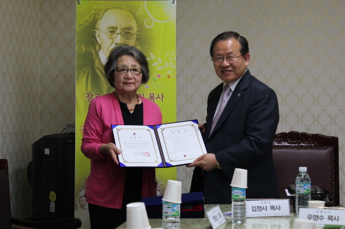 기 증 자 : 한화심, 김병목, 한화정, 한화열, 한화석, 한화림 기 증 일 : 2011년 5월 12일 (목) 기 증 처 : 대한예수교장로회 총회 기증목록 : 한석진 목사님 관련 사진 2점, 전기 2권, 소장 유품 1점 1. 『한석진 목사님 회갑기념 사진』1점 2. 『최초의 한국인 7인 목사(선교백년)』 (한국기독교사진문화원 제작 사진, 1983년 한국기독교선교 100주년기념) 1점 3. 『한국기독교개척자 한석진 목사와 그 시대』 (1971, 채필근, 대한기독교서회) 1권 4. 『한국기독교인물탐구 2 한국기독교 선구자 한석진 목사의 생애와 사상 - 나라의 독립 교회의 독립』(1991, 이덕주, 기독교문사) 1권 5. 『병풍』1점 (병풍에 직접 우표를 붙이신 것으로, 금강산수양관 완공 후 당인리에서 말년을 보내던 시기에 제작된 것으로 추정) 기증자 일동은 상기 목록의 사진, 도서, 유품을 대한예수교장로회 총회(대표자 총회장 김정서 목사)에 기증하는 바입니다. 2 0 1 1 년 5 월 1 2 일 한석진 목사님 후손 대표 서명 대한예수교장로회 총회 대표 서명 |