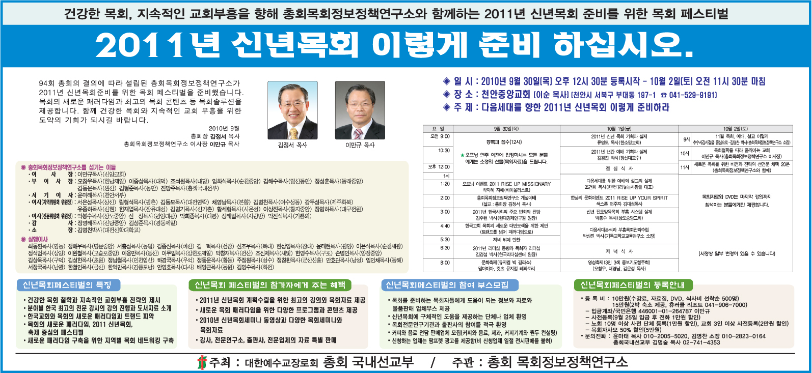 2011년 신년목회 준비를 위한 목회 페스티벌 광고이미지