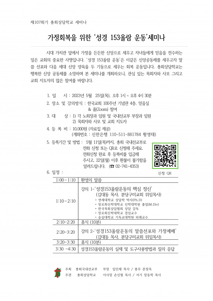 가정회복을 위한 ‘성경 153올람 운동’세미나