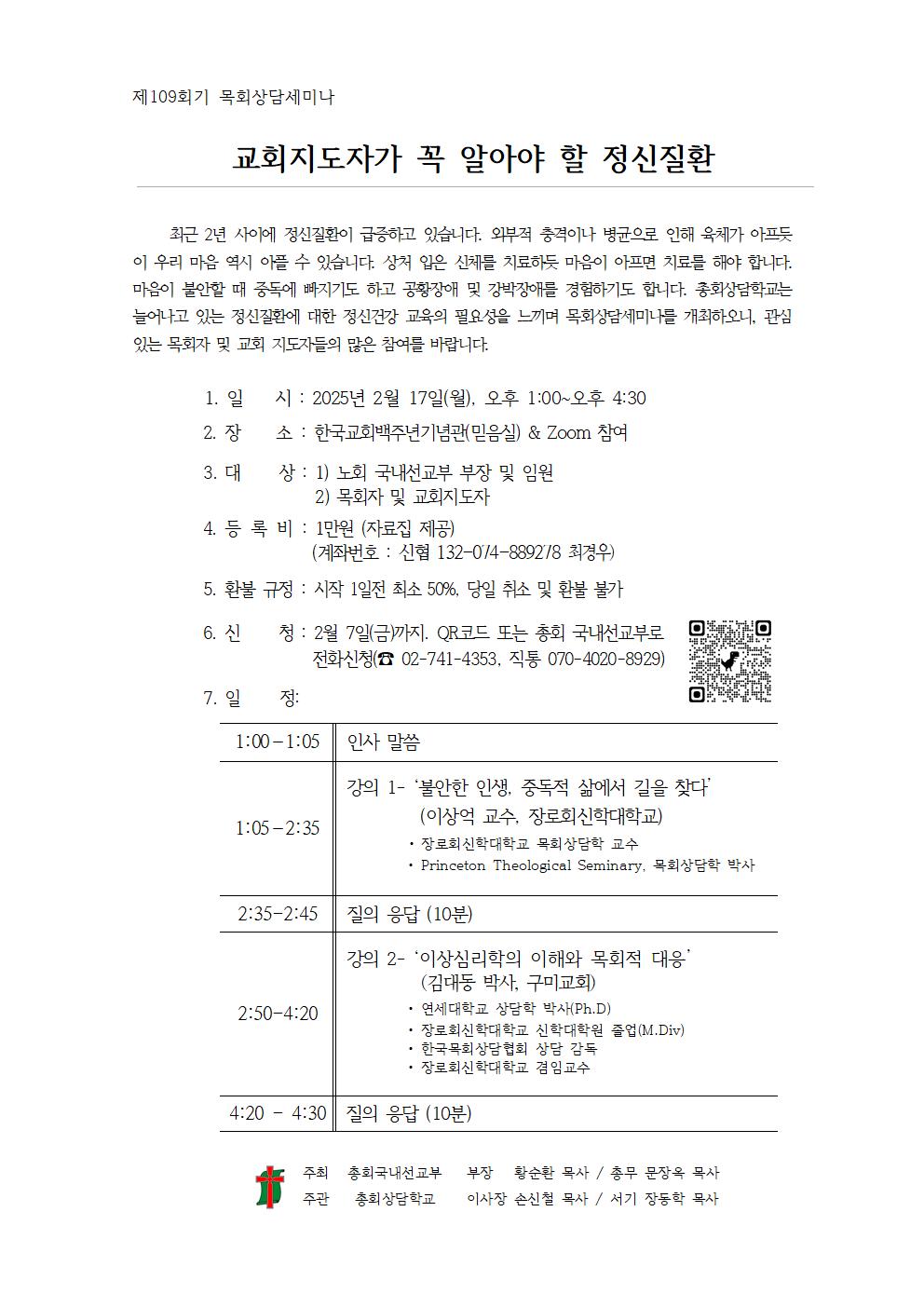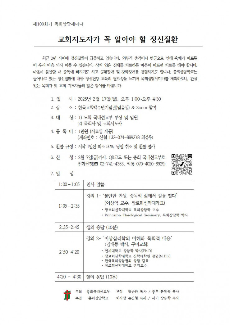 교회지도자가 꼭 알아야 할 정신질환' 세미나(총회 상담학교)