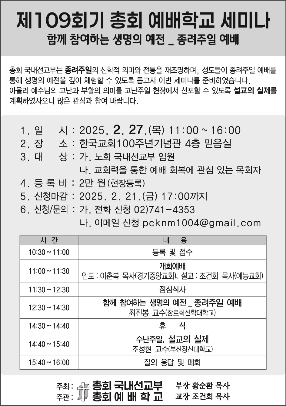 총회 예배학교 세미나- 참께 참여하는 생명의 예전 종려주일 예배
