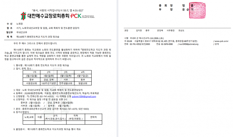 귀 노회와 지교회에서 아래 일정을 참고하시어 깊은 관심과 적극적으로