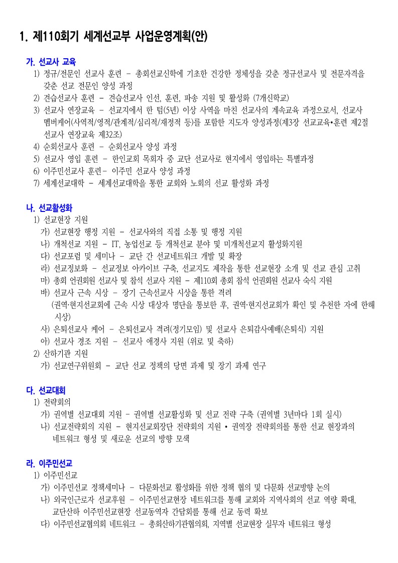 세계선교부대한예수교장로회총회의 세계선교 행정업무를 담당하는 부서입니다.
