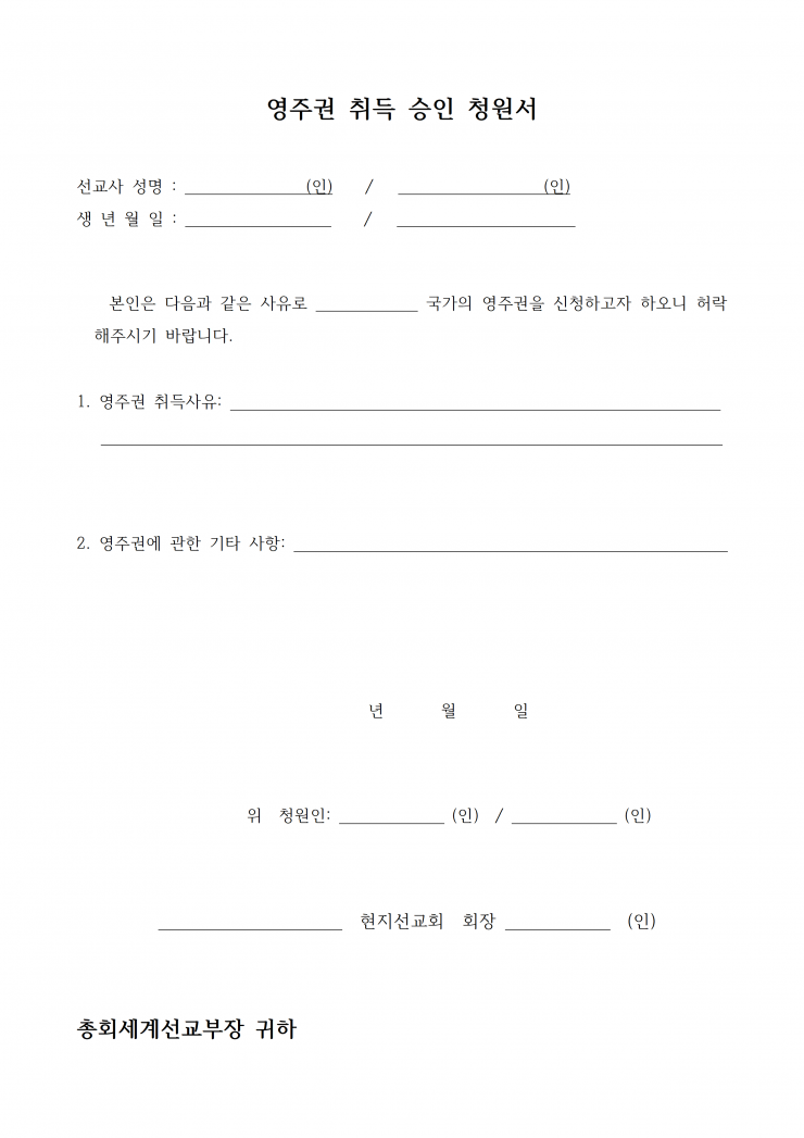 [행정] 영주권 취득 승인 청원서