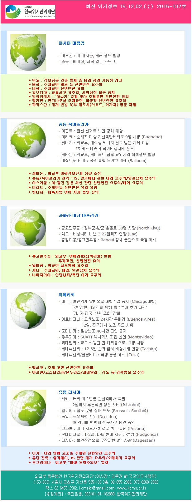 2015년 12월 2일 최신 위기정보입니다. (사) 위기관리재단