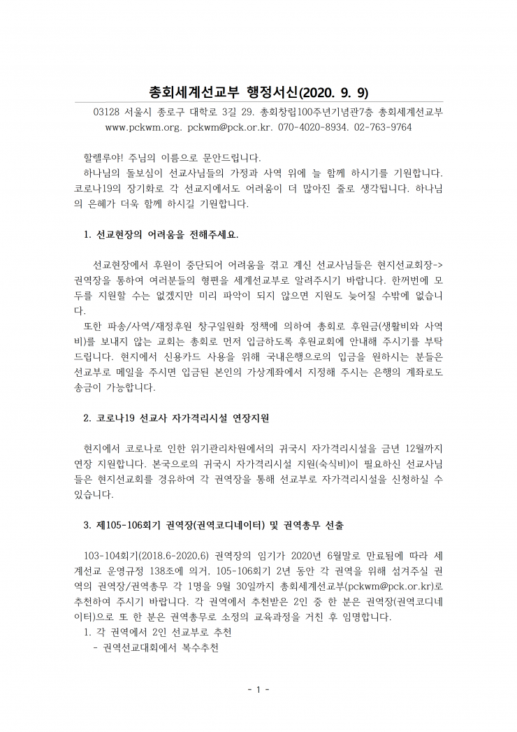 대한예수교장로회총회의 세계선교 행정업무를 담당하는 부서입니다.