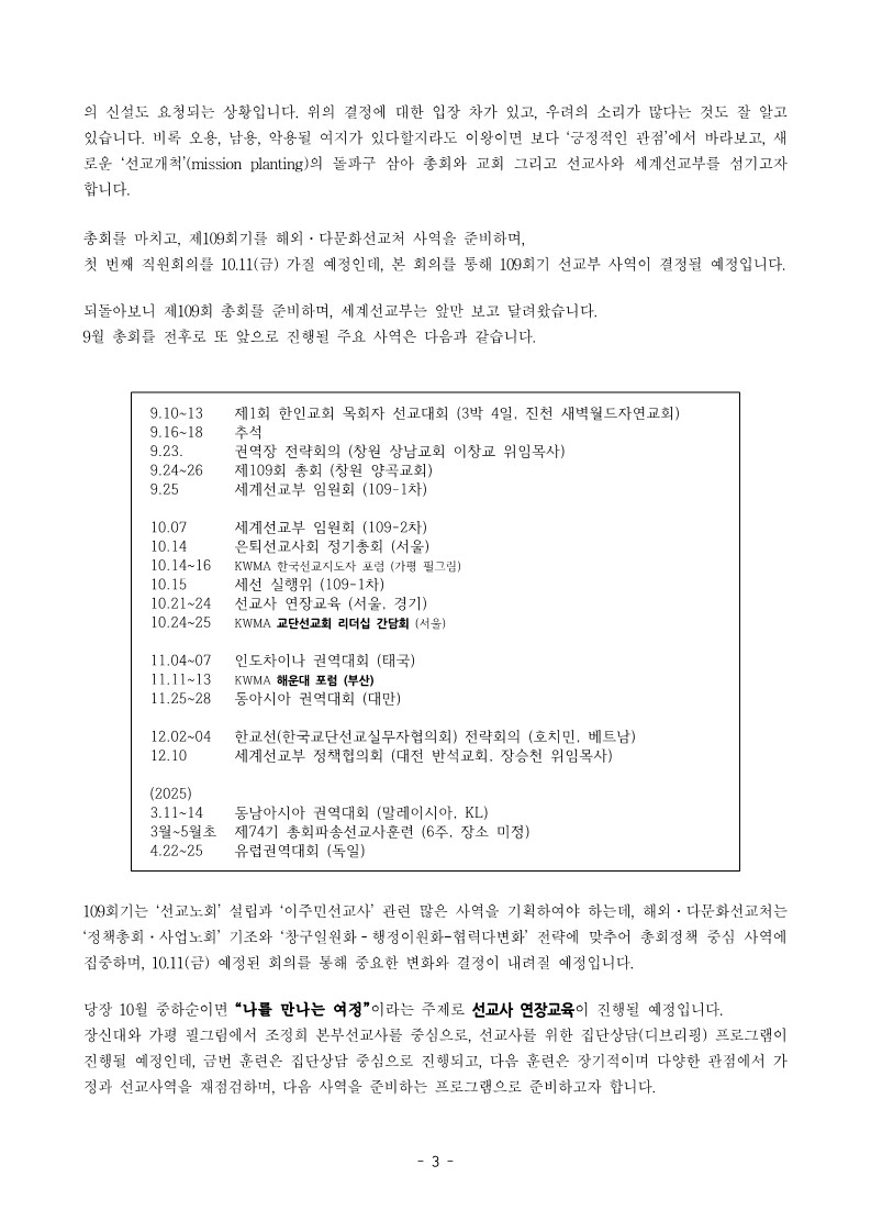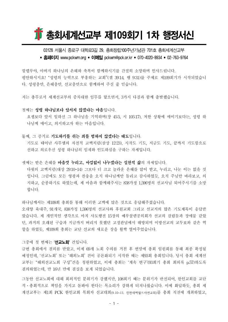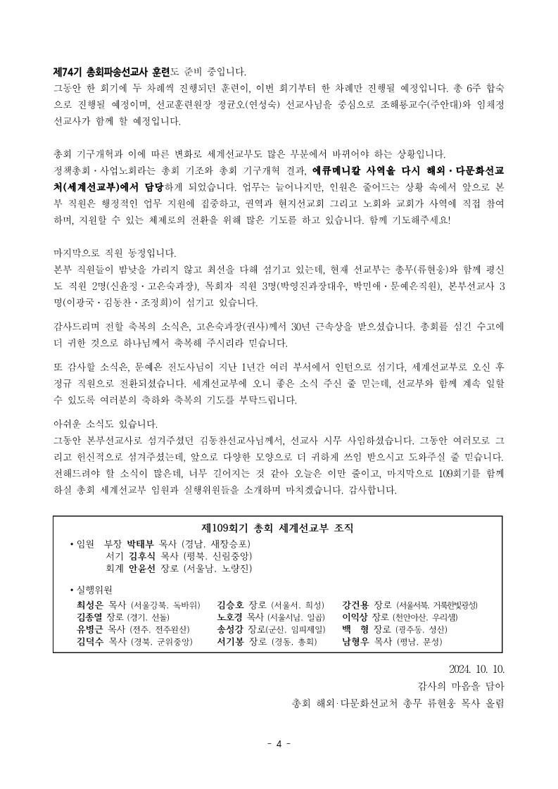 [행정] 세계선교부 109-1차 행정서신(2024.10.10)