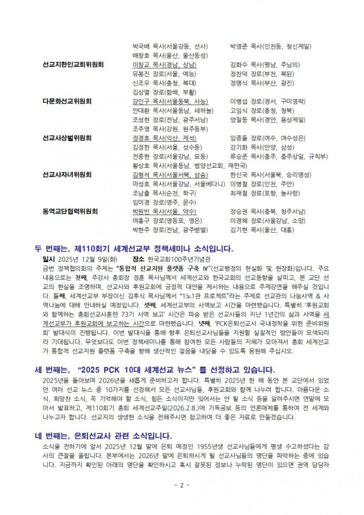 [행정] 세계선교부 110-2차 행정서신(2025.11.19.)