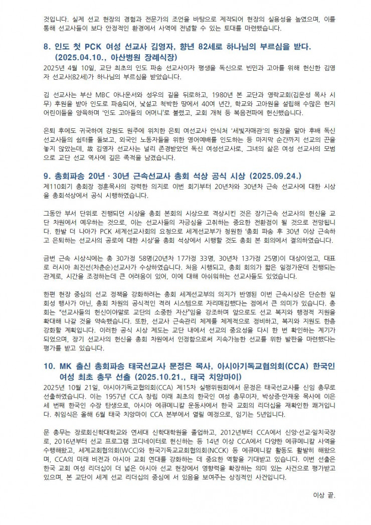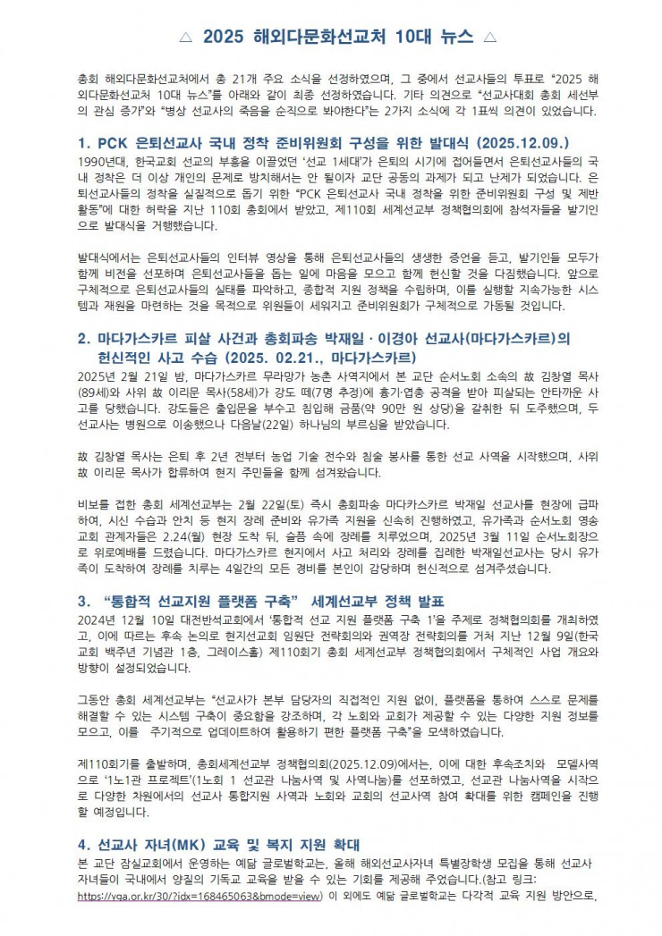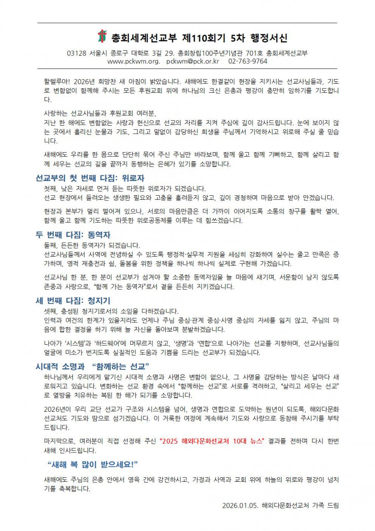 [행정] 세계선교부 110-5차 행정서신(2026.01.05.)