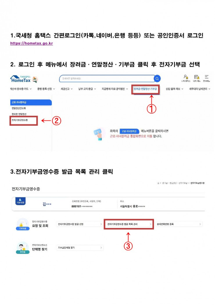[공지] 2026년도 기부금영수증 국세청 홈택스 확인방법