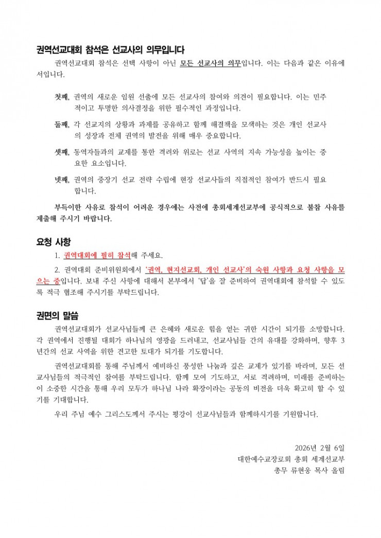 [행정] 세계선교부 110-6차 행정서신(2026.02.06.)