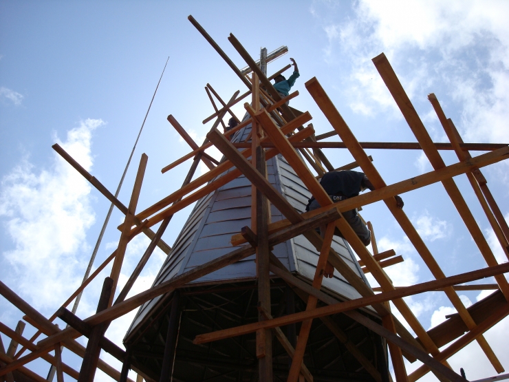 건기인 요즘....사람이 가장 무서워한다는 11미터의 높이 까지 나무를 대고 올라가서 네온사인 보수공사를 하는 저 집념의 사나이들....67세의 노익장(?)을 과시하시며 귀한 아드님과 함께 이 보수공사의 진두지휘를 맡으신 이용구집사님과 그 패밀리 여러분들....너무너무 귀하고 감사한 보배로운 분들입니다.