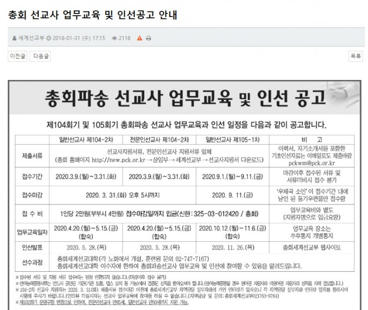 그러나 105-1차 선교사 훈련을 다시 재개하게 되어 새로 공지를 올려드리오니 참고해주시면 되겠습니다.