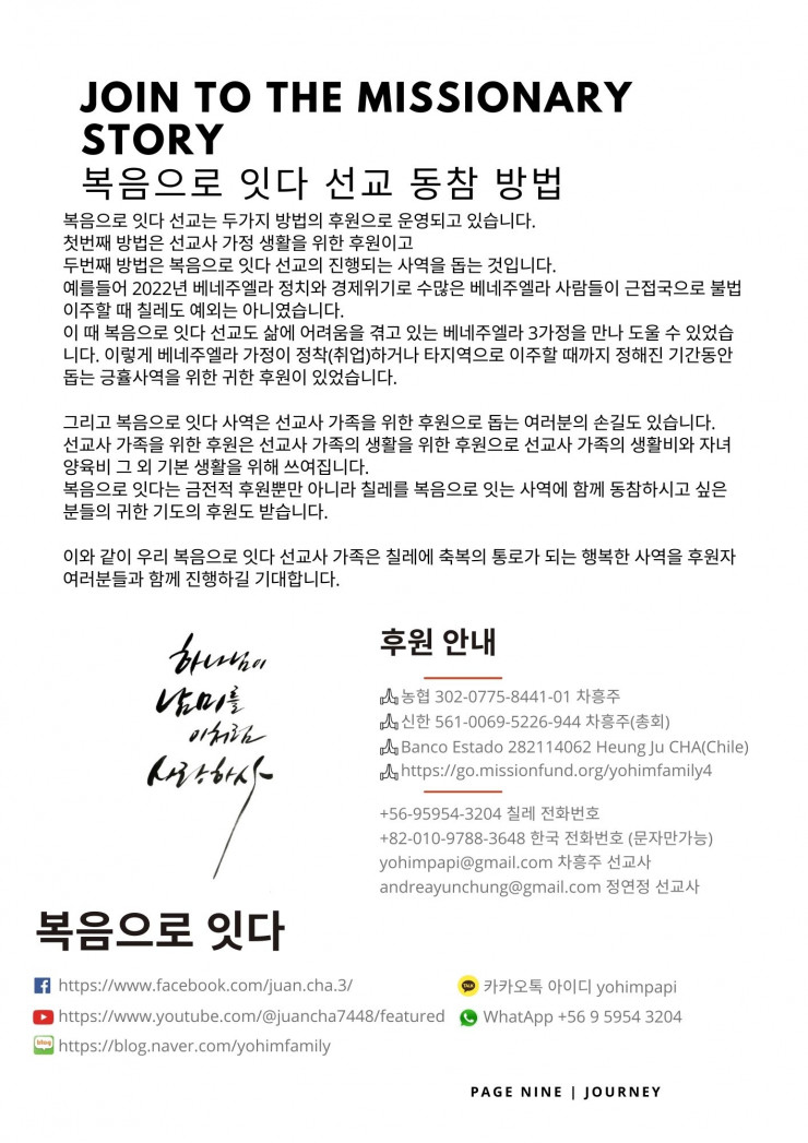 [남미] [칠레] 2023년도 7,8월 복음으로 잇다 소식