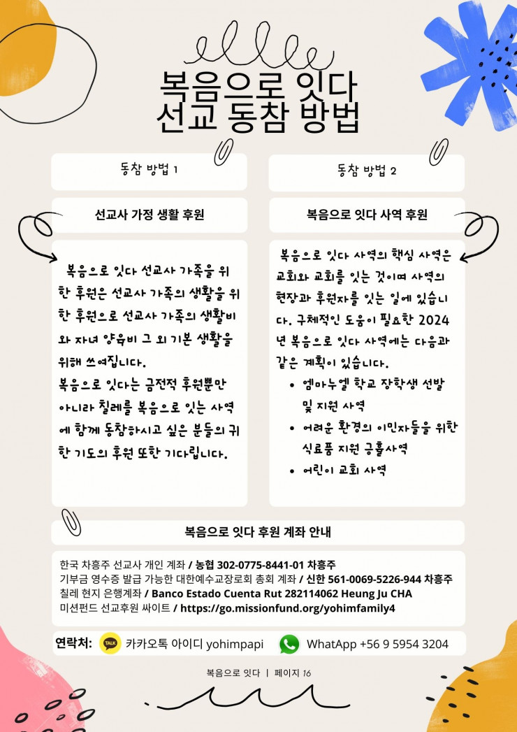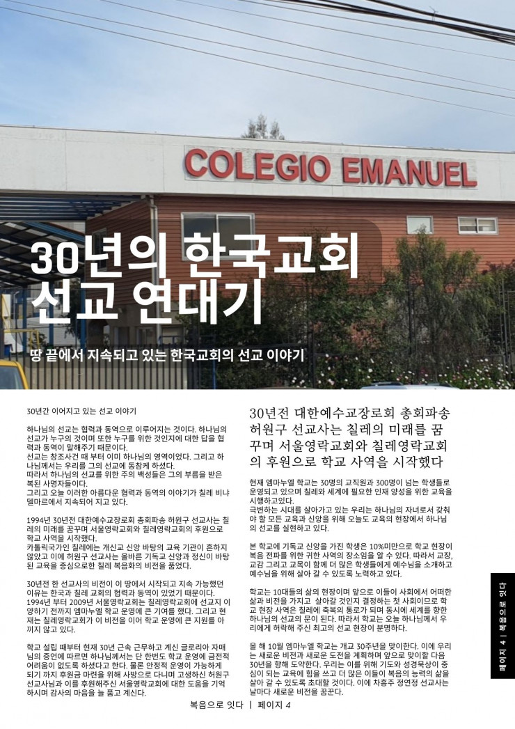 [남미] [칠레] 2024년도 3,4월 복음으로 잇다 소식