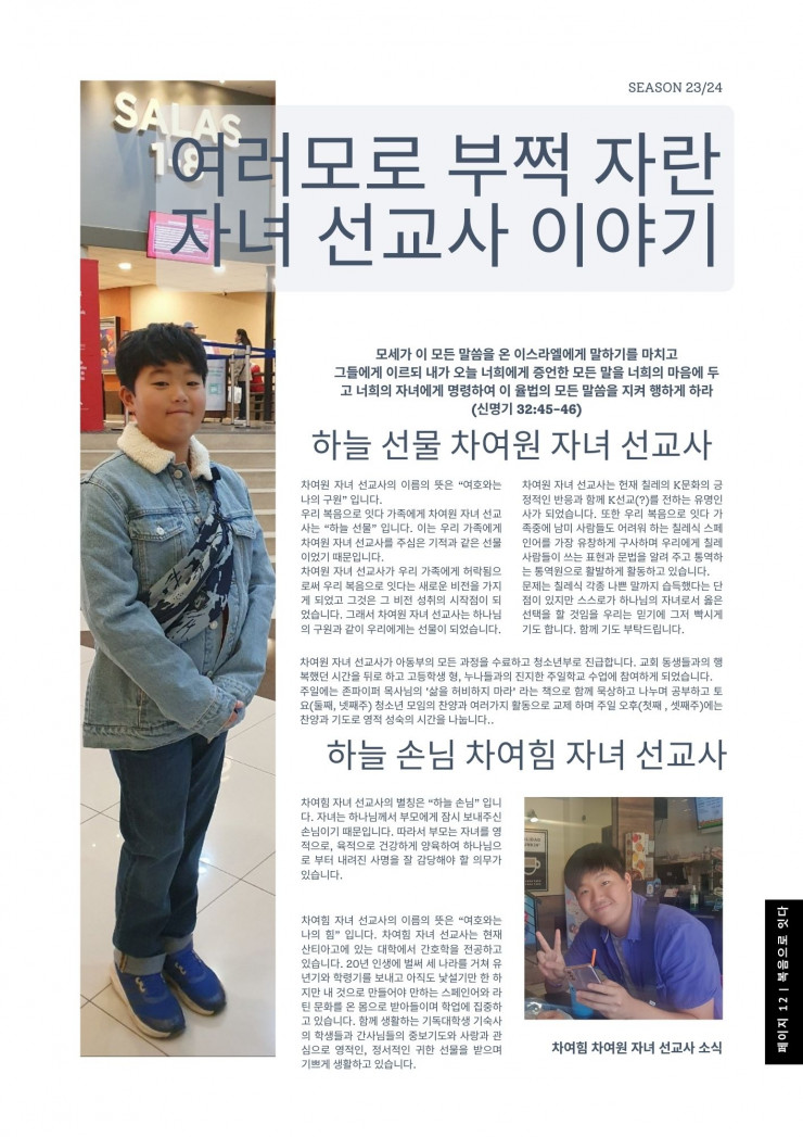 세계선교부의 선교편지입니다.