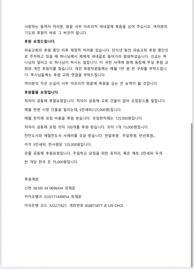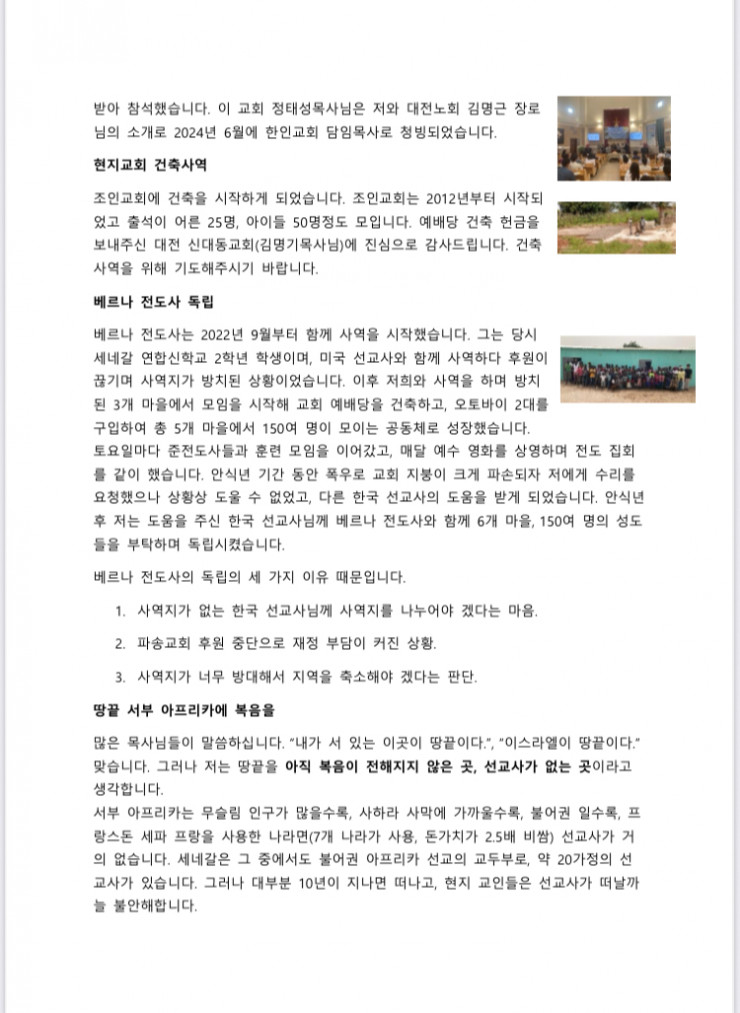 세계선교부의 선교편지입니다.