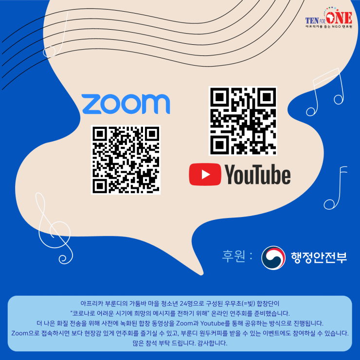 이에 행정안전부의 후원을 받아 온라인 음악회를 아래와 같이 열고자 합니다.