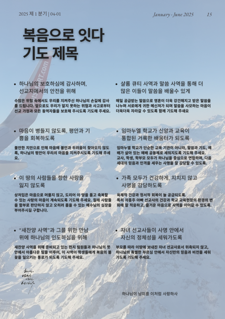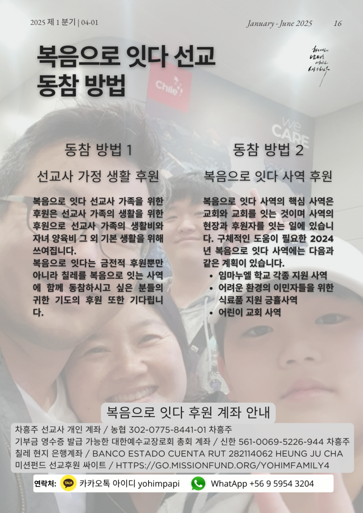 [남미] [칠레] 2025년도 1-6월 복음으로 잇다 소식