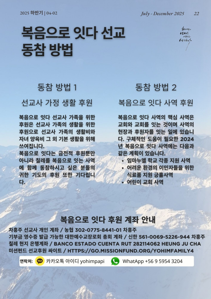 [남미] [칠레] 2025년도 7-12월 복음으로 잇다 소식