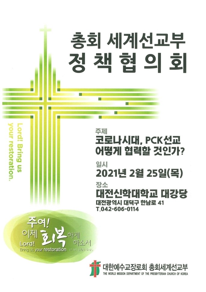 ▣ 문의 및 접수: 총회세계선교부, 02) 763-9764, pckwm@pck.or.kr