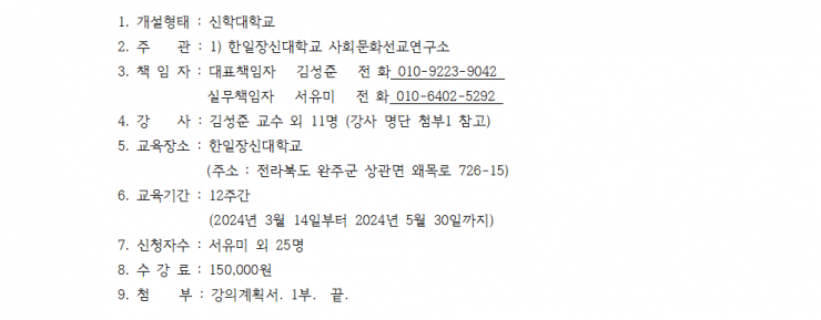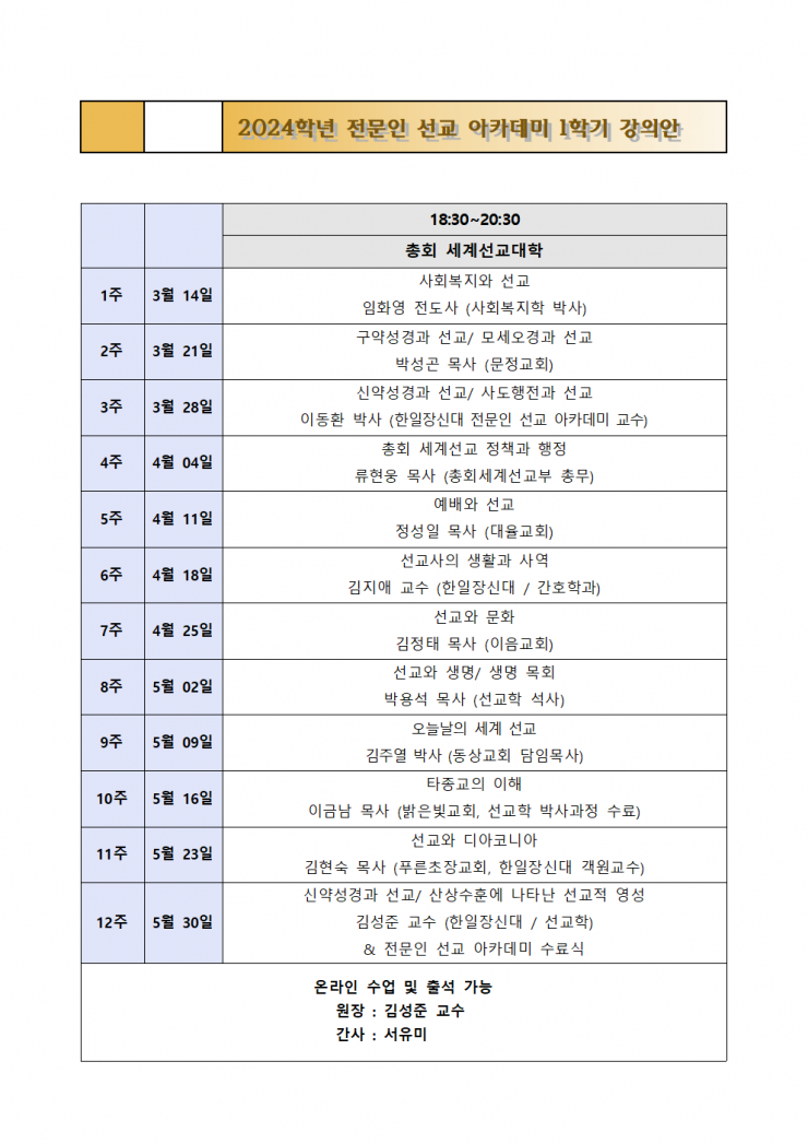 총회세계선교대학 개설안내(2024.3.14.~5.30 / 한일장신대학교 사회문화선교연구소)