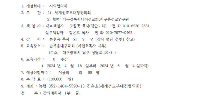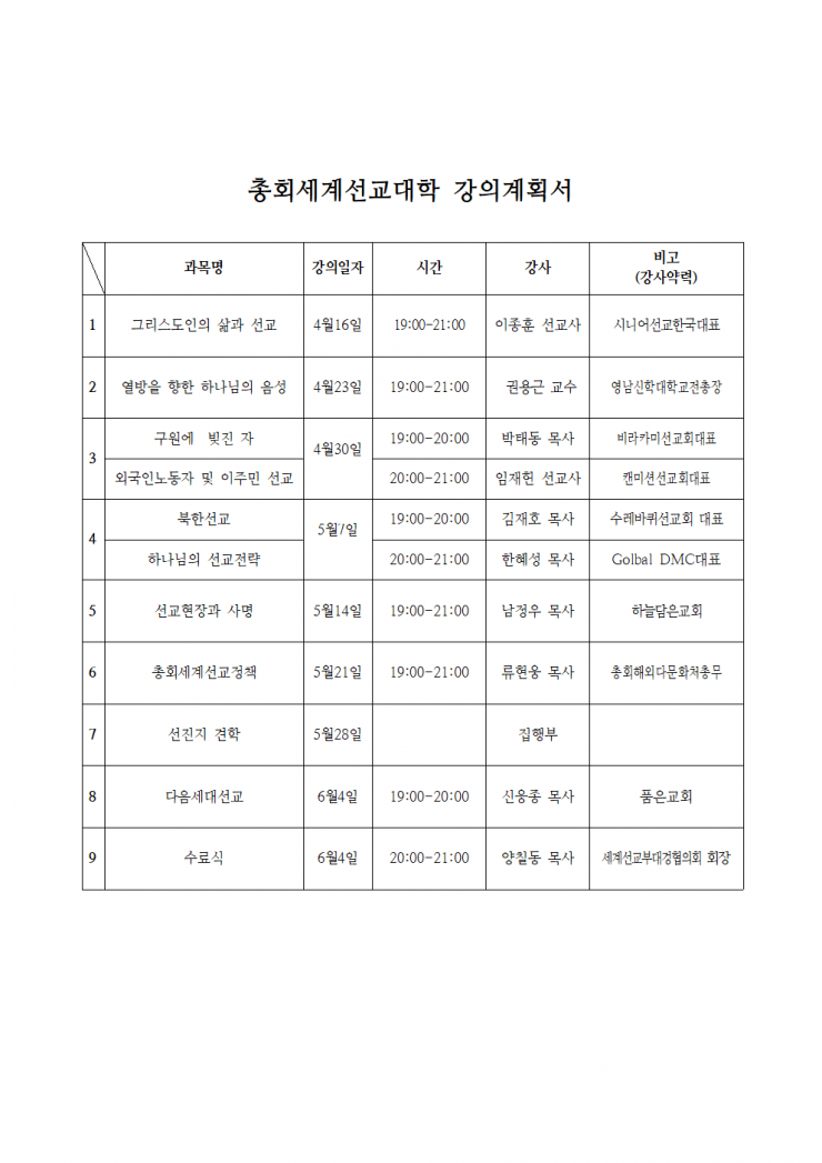 총회세계선교대학 개설안내(2024.4.16~6.4 / 세계선교부대경협의회)