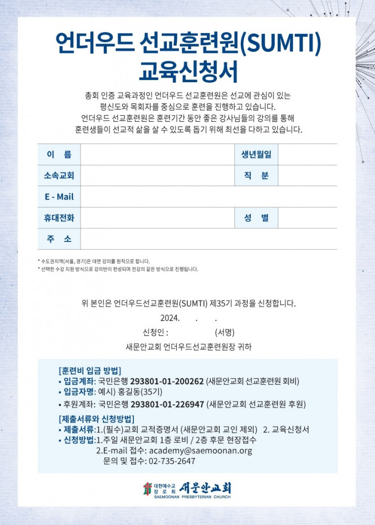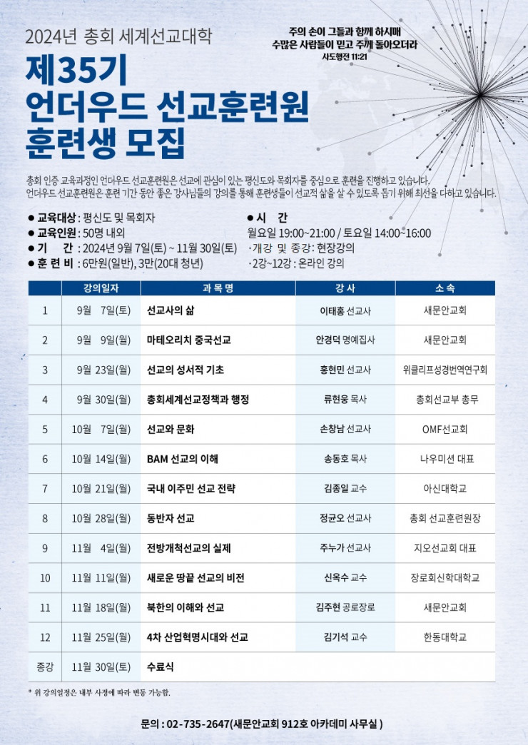 총회세계선교대학 개설안내(2024.9.7.~11.30 / 언더우드 선교훈련원)