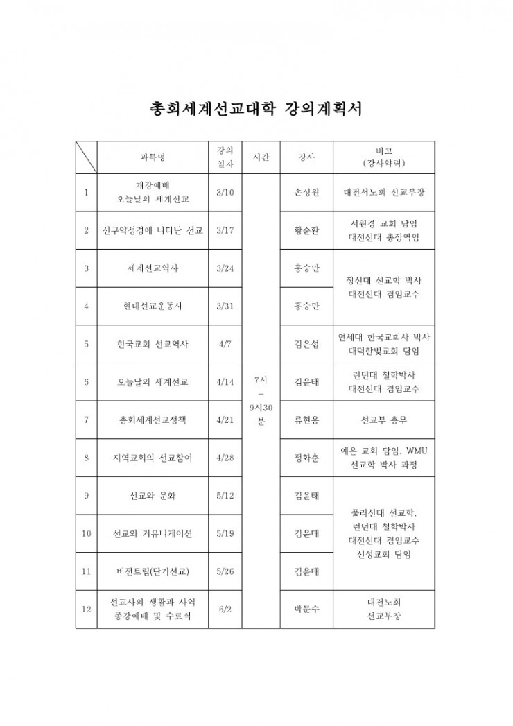 총회세계선교대학 개설안내(2025.3.10.~6.2 / 대전신학대학교 선교학과)