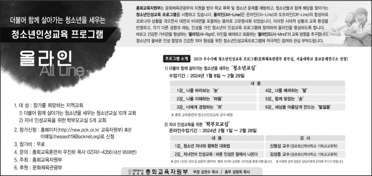 - 총회 교육훈련처 청소년인성교육 강사 배정