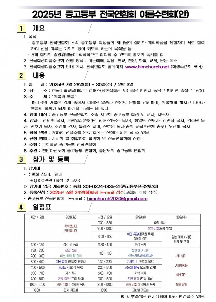 제22회 전국청소년 연합수련회(2025.7.28~30/한국기술교육대학교)
