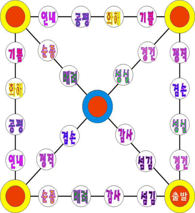 2월 설날에 할 성품 윷놀이 판입니다.. 많은 성품을 먼저 획득하기 / 획득한 성품을 추첨을 통해 점수를 주기 등