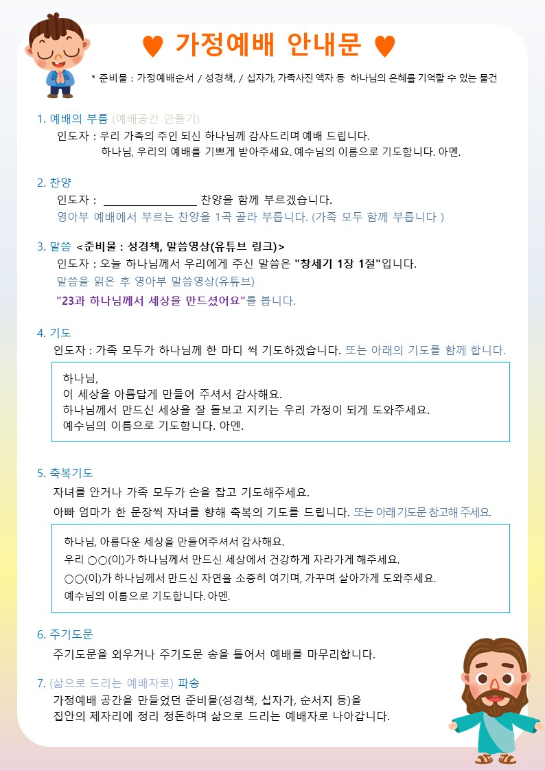 이에 따라 6월 한 달 동안 가정예배지를 제공하오니 참고하시기 바랍니다.