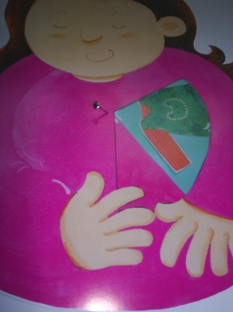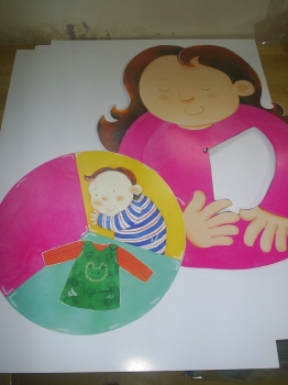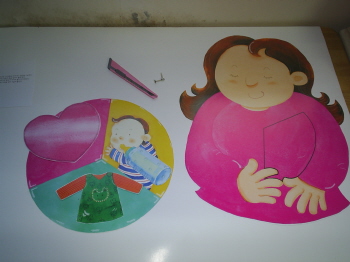 16-6 오려낸 부분과 엄마그림 뒷면에 들어간 그림과 할핀을 준비한다.