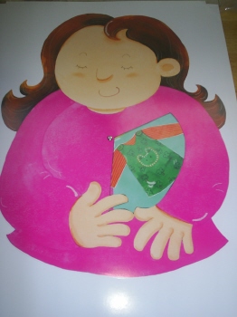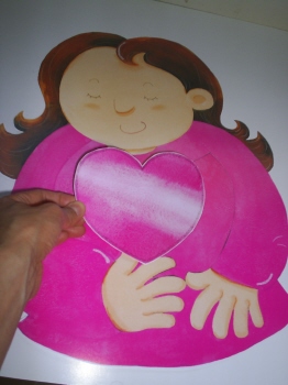 16-13 하트를 엄마의 가슴에 붙인다.