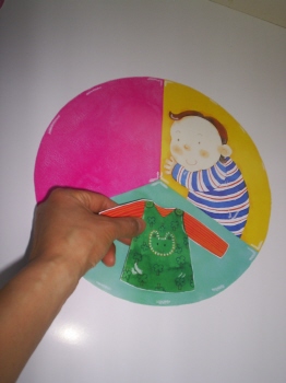 16-11 할핀으로 연결후 이야기 진행에 따라 돌려가면서 한 장면씩 보여준다.(옷).