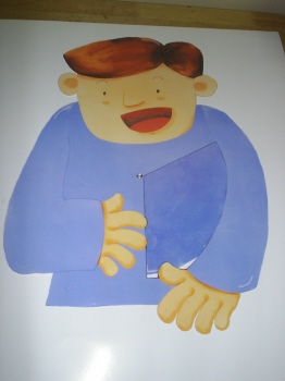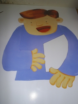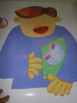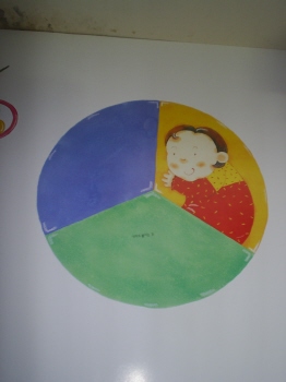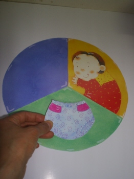 17-4 아빠그림 뒷면에 할핀으로 고정시킬 그림판(초록바탕에 기저귀그림을 붙인다).