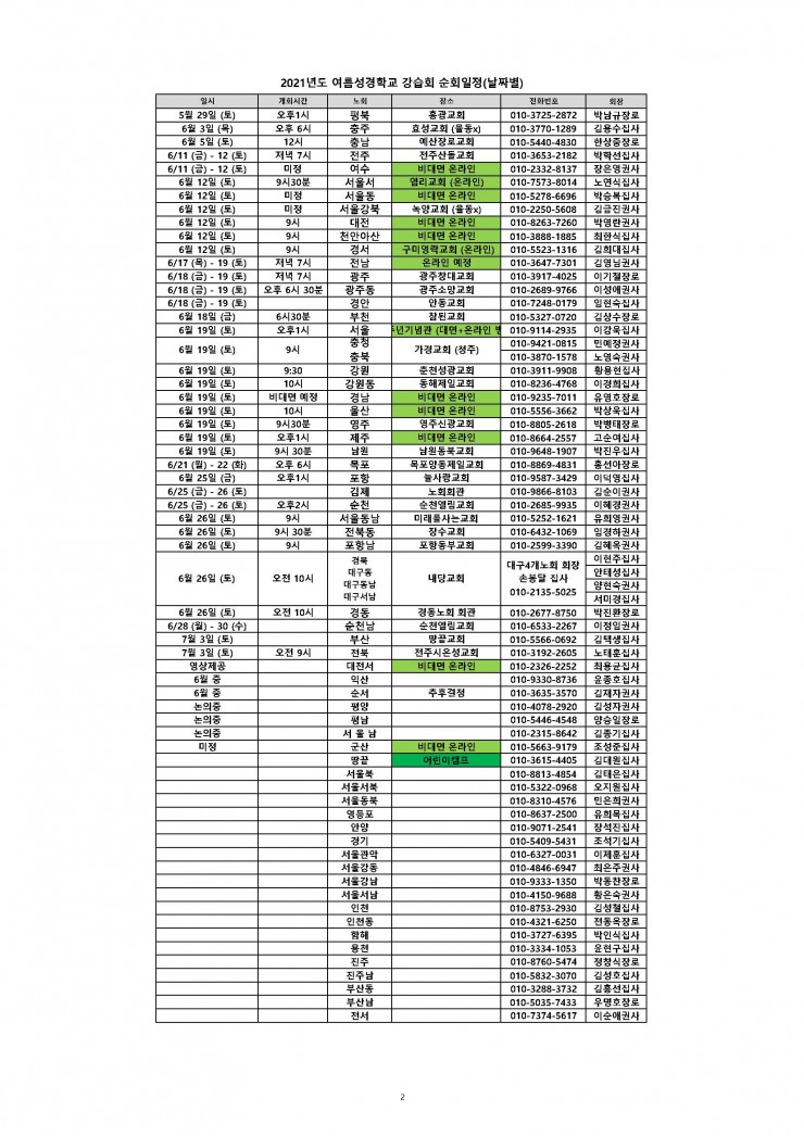 [21-여름] 노회별 강습회 일정을 올려드립니다.