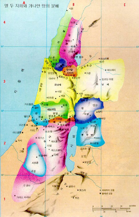 1년차 장년부 12단원 2과 인터넷 자료 1. 가나안 정착 지도(참고)
