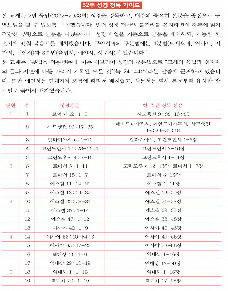 [구역] 2023년 성경정독을 위한 구역예배 교재 요목