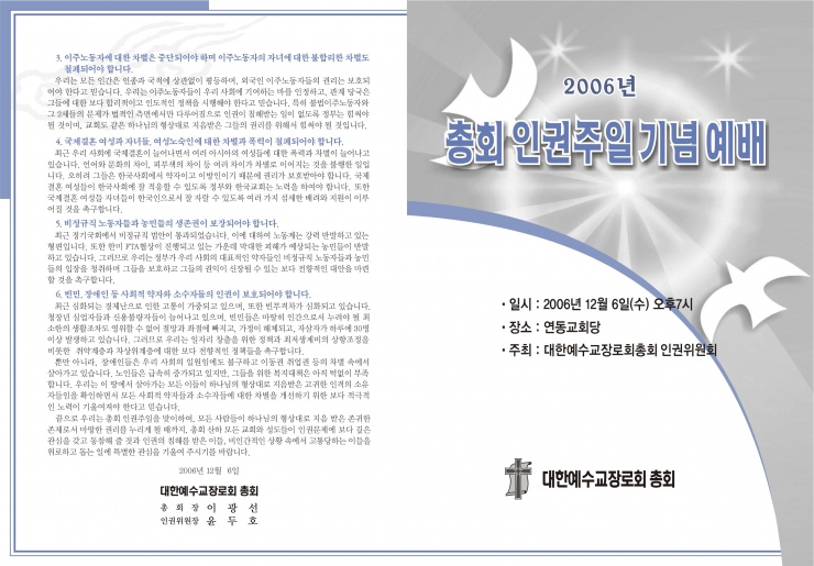 [행사자료] 2006년 인권주일 기념예배(12월6일(수)/연동교회) 및 인권주일 담화문