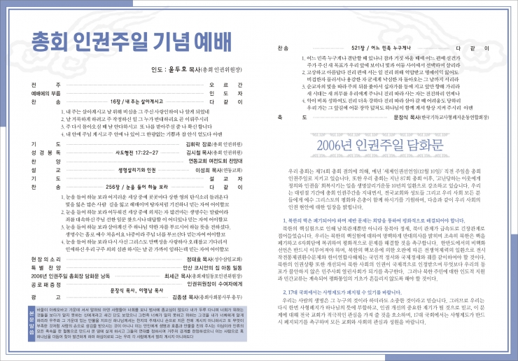 [행사자료] 2006년 총회인권주일 기념예배(12월6일(수)/연동교회)및 인권주일담화문