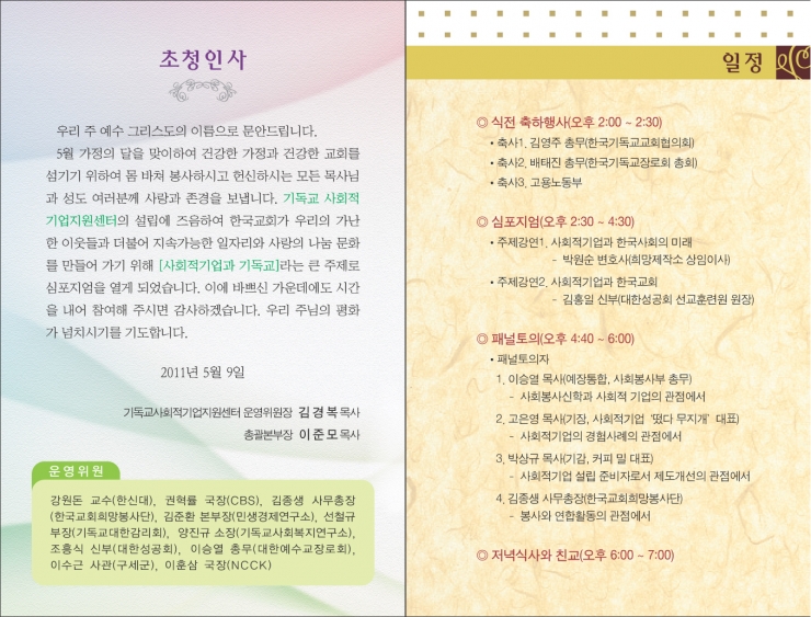 기독교 사회적기업 지원센터 설립 심포지엄(2011.5.23/아카데미하우스 대화의 집)