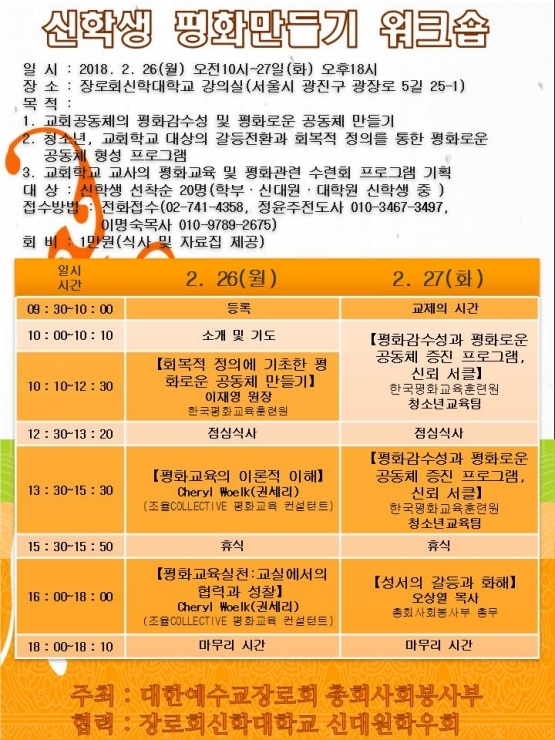 ▣ 대 상 : 신학생 선착순 20명(학부·신대원·대학원 신학생 중 평화에 관심 있는 사람 누구나)