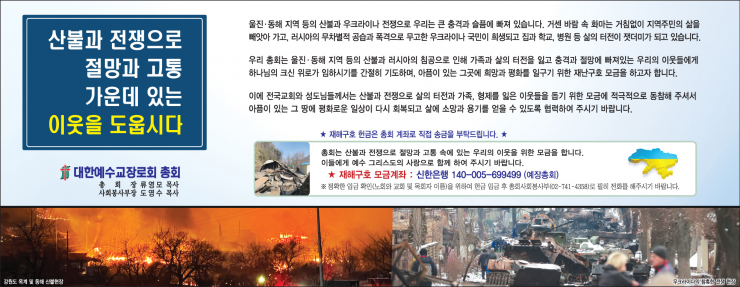 우크라이나 국민과 산불피해지역 주민을 위한 기도와 모금 협조요청