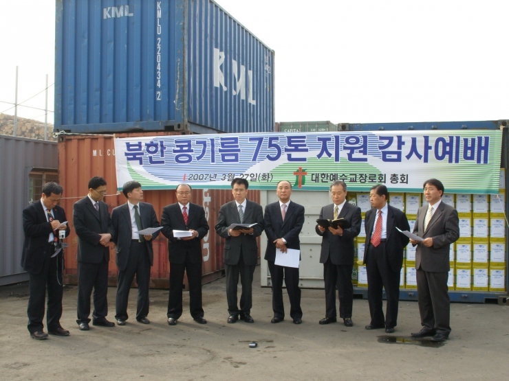 이에 따라 예장 총회는 3월 27일 오후 3시 인천보세창고에서 선적 감사예배를 드렸다. 이번 콩기름 지원의 규모는 18리터 들이 콩기름 4,500캔(75톤)이며 1억원에 상당하는 물량이다. 예장 총회는 또한 콩기름 지원 인수 인계를 위해서 4월 4일부터 7일까지 평양을 방문할 예정이다.