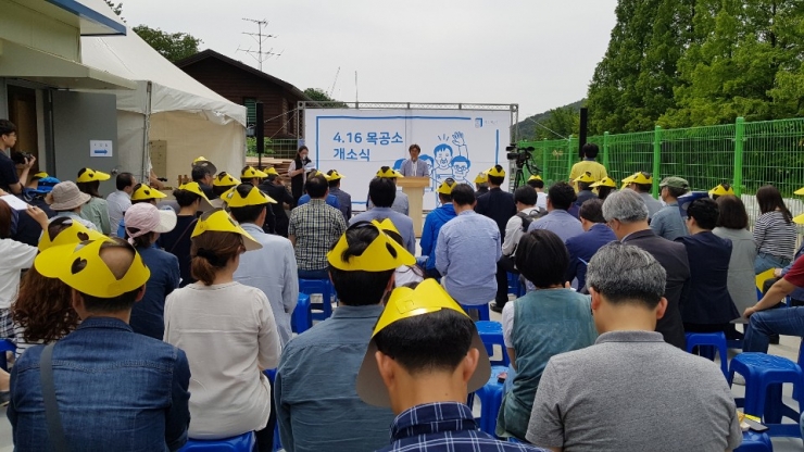 2015년 6월 합동분향소 앞에 컨테이너 및 작업테이블 설치 (ᄋᆞ래 목공방 지원)