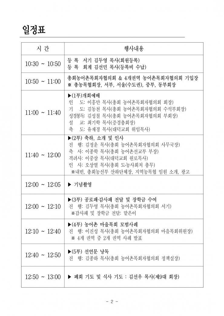 총회주간일정