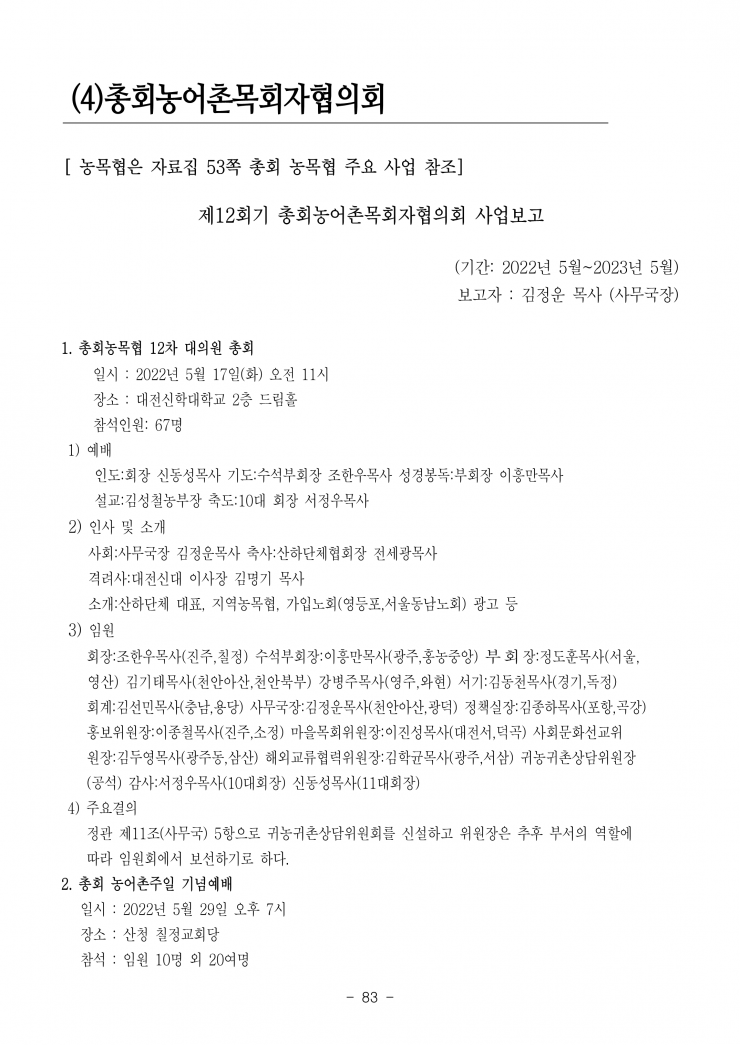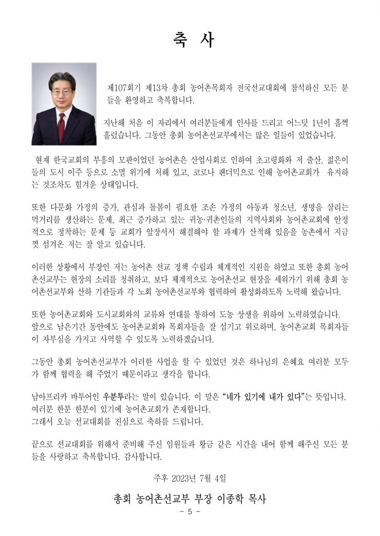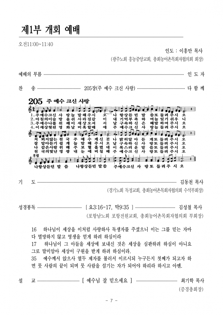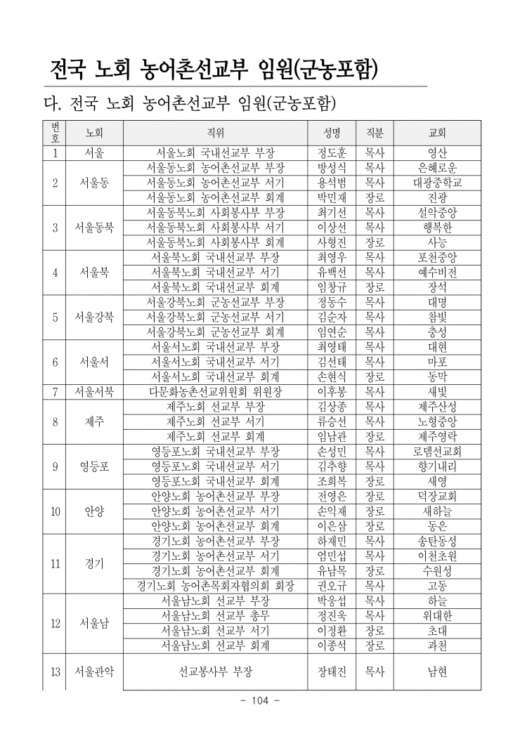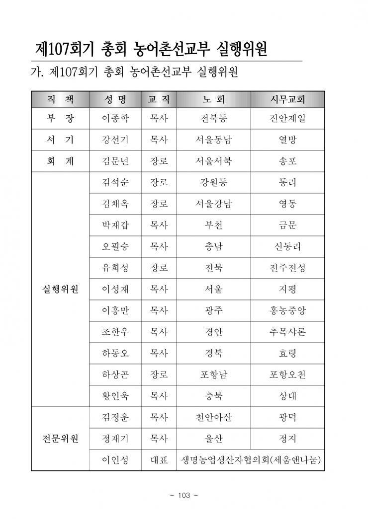 [농어촌선교자료] 제107회기 제 13차 총회 농어촌 목회자 전국선교대회