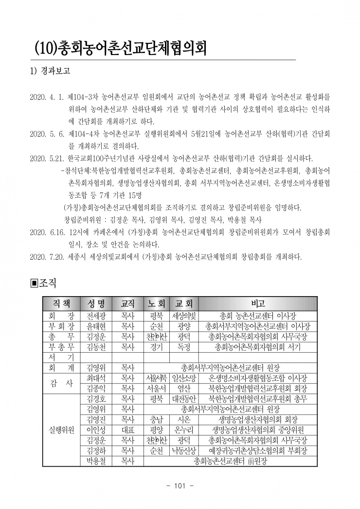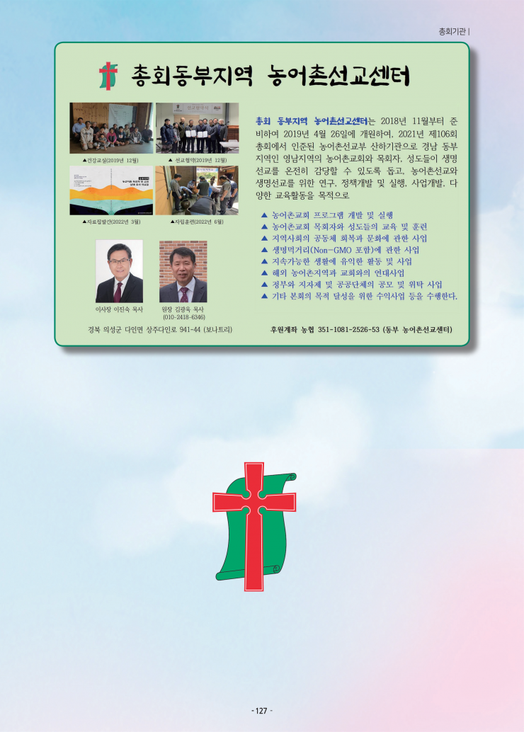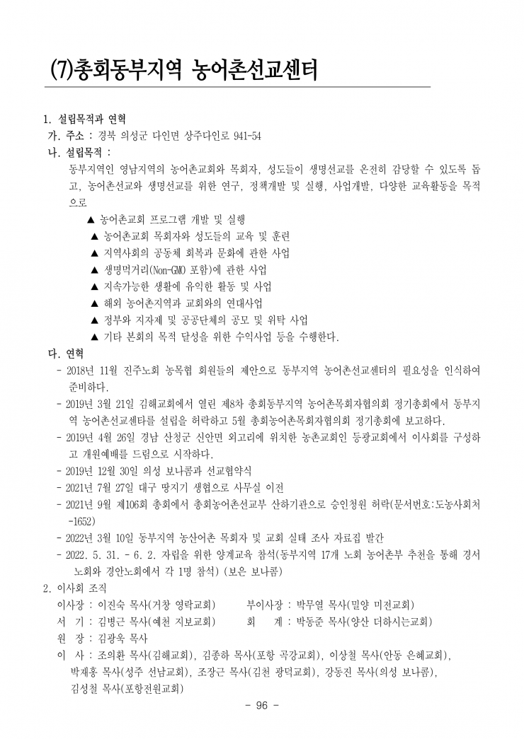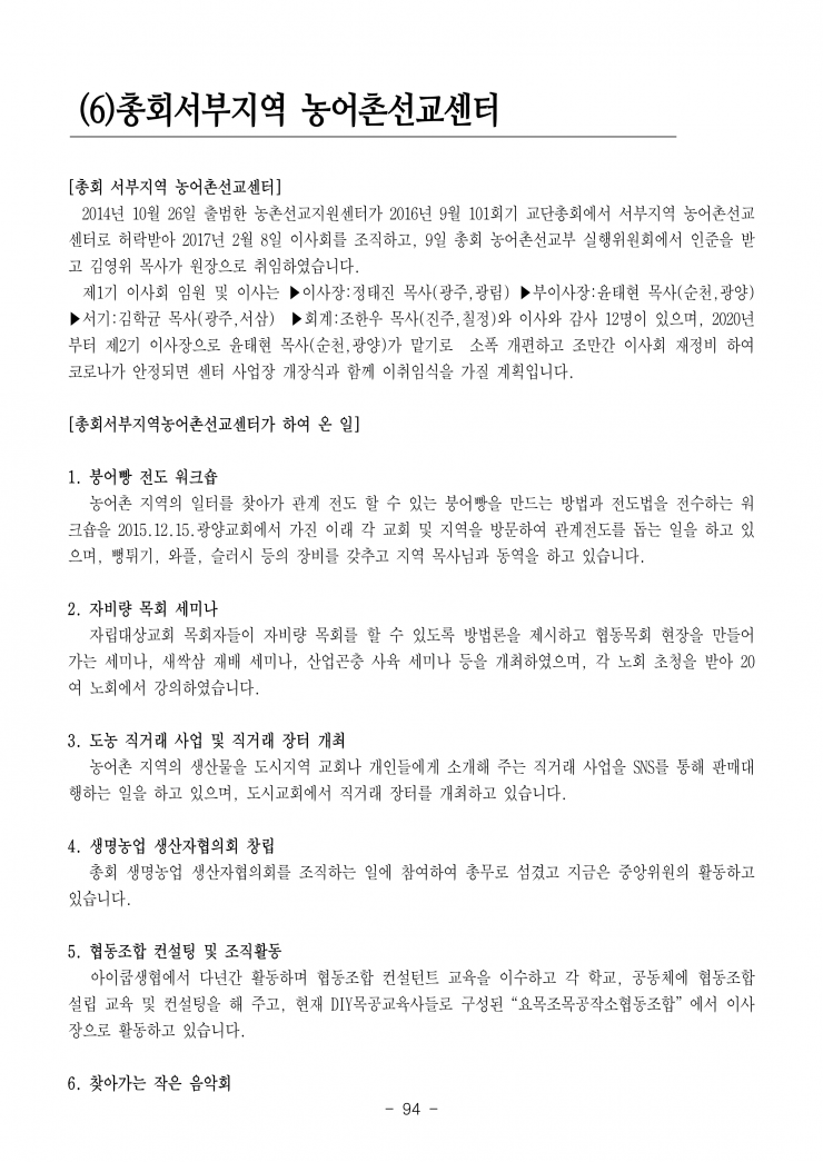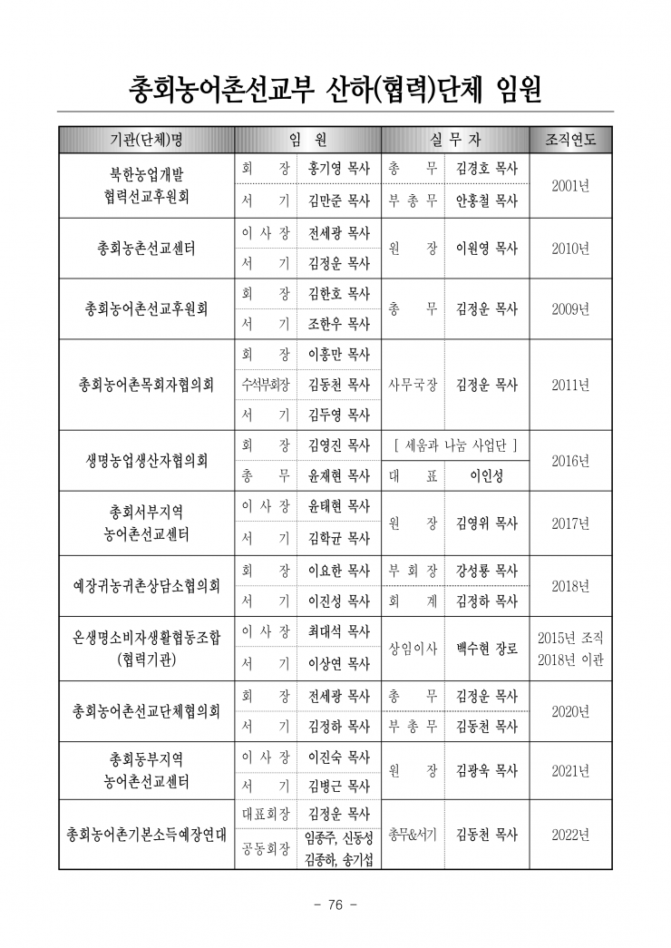 생명살림 실현, 농어촌 선교현장을 담당하는 부서입니다.